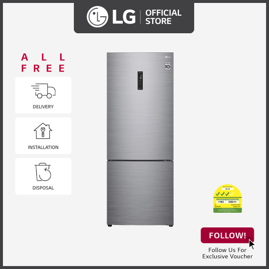 [Bulky] LG GB-B4452PZ Bottom Freezer Refrigerator, 451L, Platinum Silver + Free Delivery + Free Installation + Free Disposal