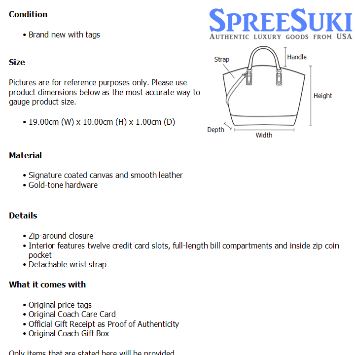 All our products are 100% authentic and purchased from Coach stores in USA. We are a reputable registered business in Singapore and it is illegal to sell counterfeit goods in Singapore. This product also comes with a gift receipt which is printed by the Coach store that we purchased the item from. It states the item that we purchased and the Coach store that it was purchased from, proving the authenticity of the item. Buy with confidence.