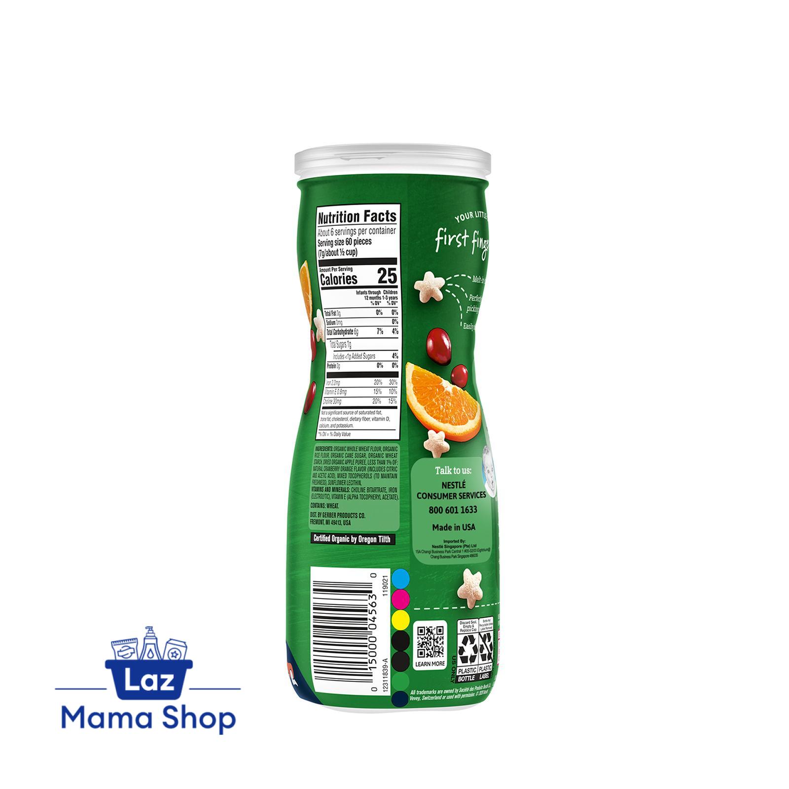 INGREDIENTS: ORGANIC WHOLE WHEAT FLOUR, ORGANIC RICE FLOUR, ORGANIC WHEAT STARCH, ORGANIC CANE SUGAR, DRIED ORGANIC APPLE PUREE, LESS THAN 1% OF: TRI- AND DICALCIUM PHOSPHATE, NATURAL CRANBERRY ORANGE FLAVOR (CONTAINS CITRIC AND ACETIC ACID), MIXED TOCOPHEROLS (TO MAINTAIN FRESHNESS), SUNFLOWER LECITHIN. VITAMINS AND MINERALS: VITAMIN E (ALPHA TOCOPHERYL ACETATE), IRON (ELECTROLYTIC). CONTAINS: WHEAT Always refer to the product packaging for the most accurate and up-to-date product information.