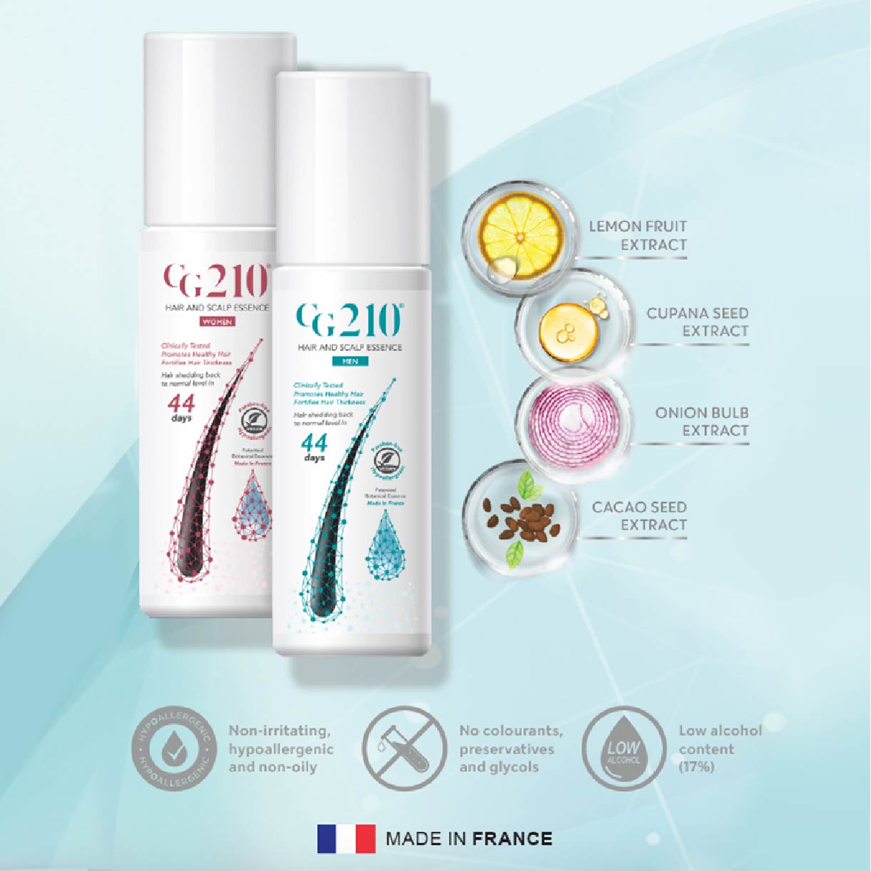 Scientifically proven, effective, 100% natural hair loss treatment. Formulated in France.