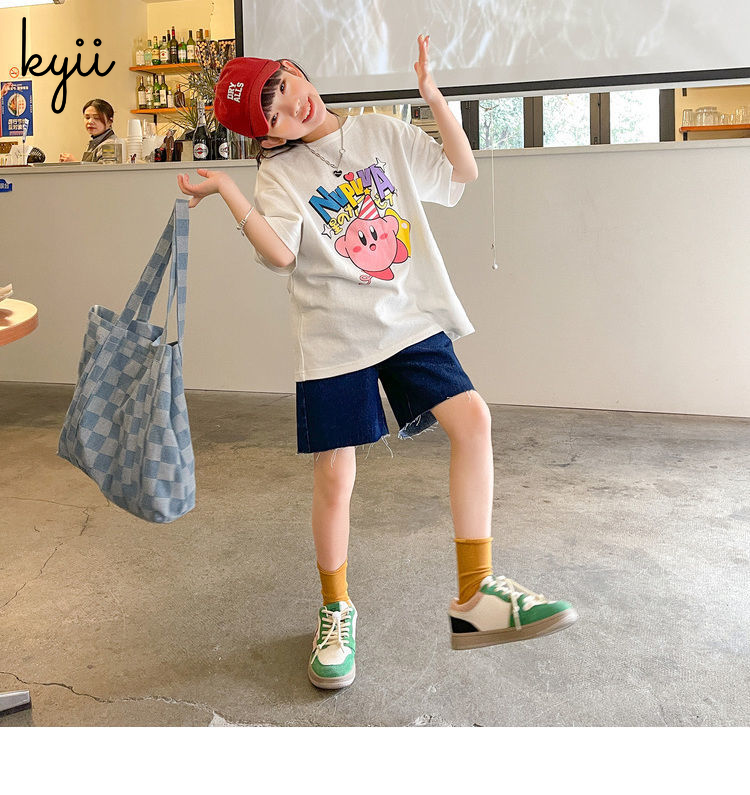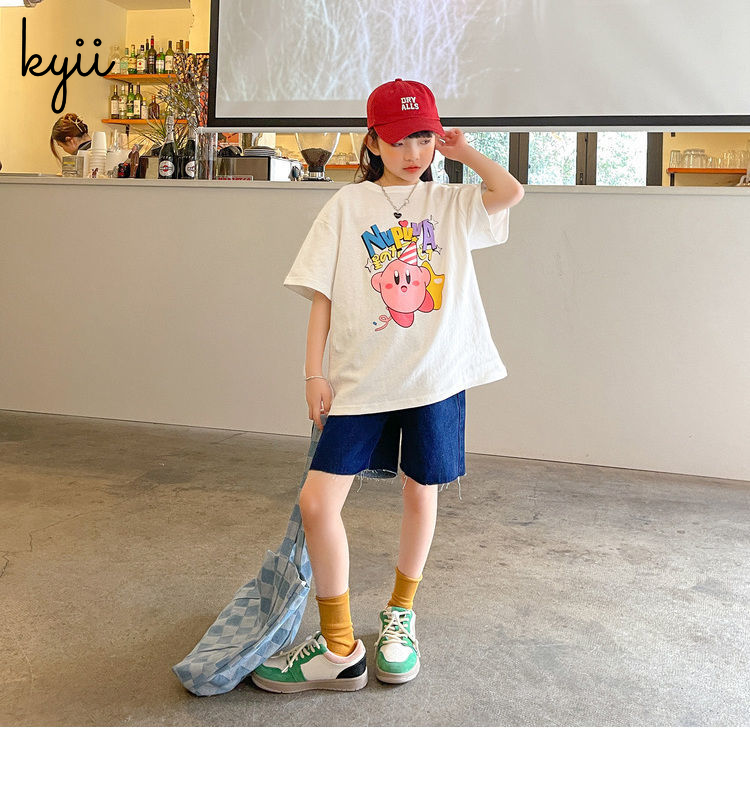 KYII Girls short sleeve summer children Cotton Korean Top ky22090