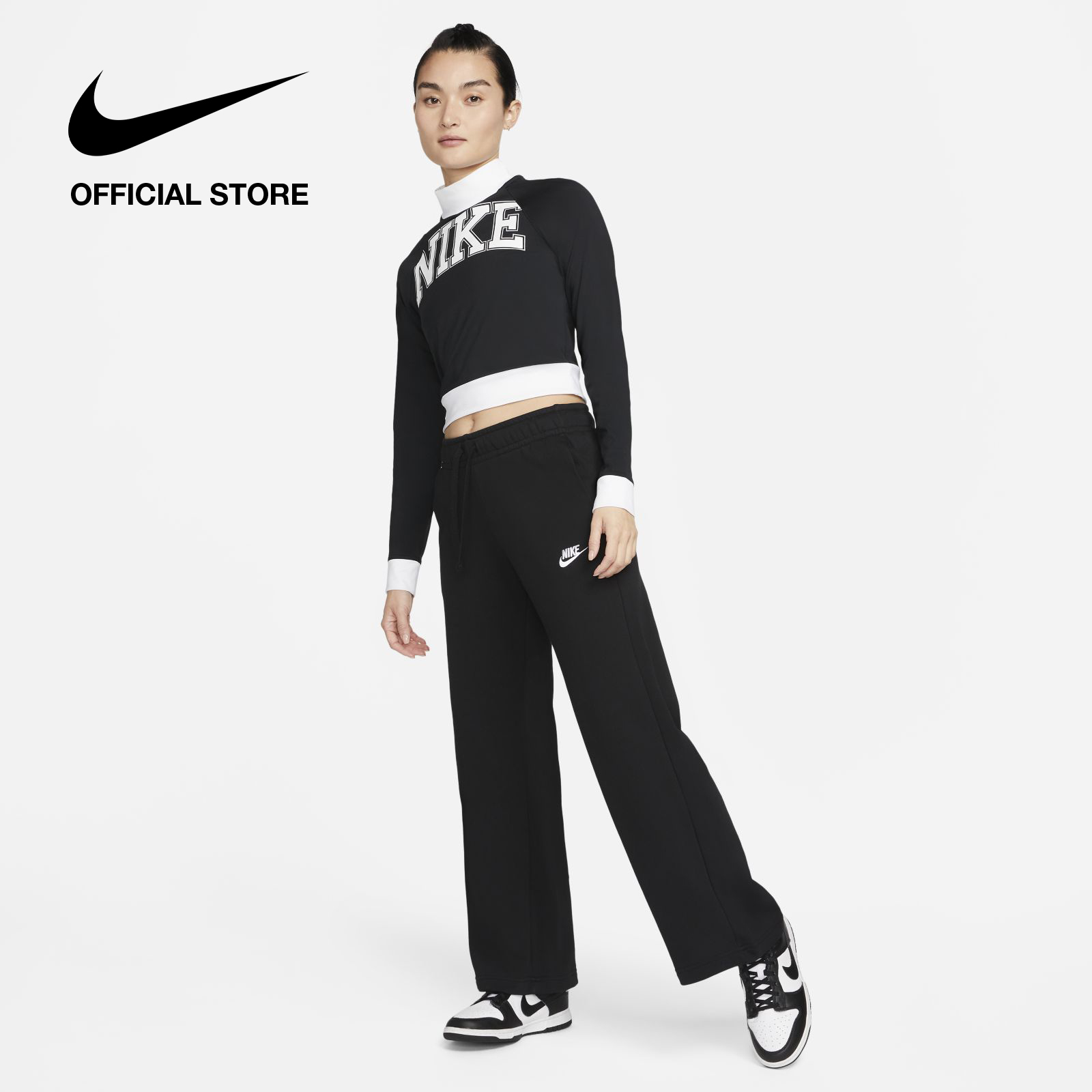Nike Women's Sportswear Club Fleece Mid-Rise Wide Pants - Black