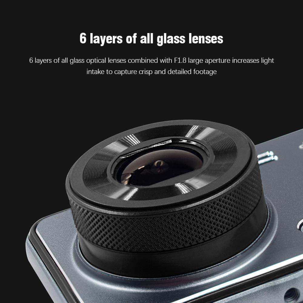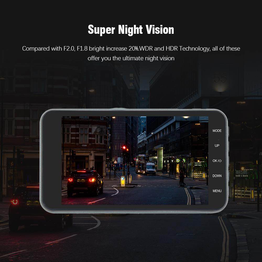 Dual Cam DVR front camera and rear camera can make a recording at the same time and have two split-view display. Full HD 1080P front camera with 140° wide-angle, and 720P rearview camera with 120° angle.